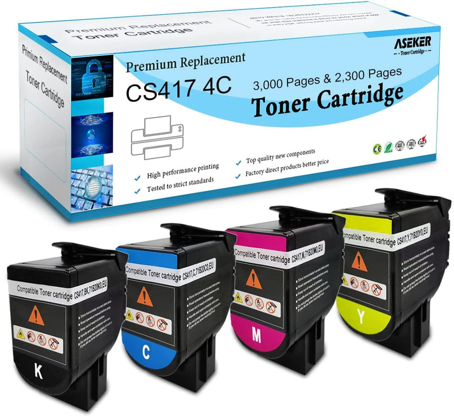 - Packungsinhalt - - Enthält 4 Packungen Kompatibler CS317 CS417 CS517 Tonerkartuschen mit Chip, 71B20K0 für Schwarz, 71B20C0 für Cyan, 71B20M0 für Magenta, 71B20Y0 für Gelb.