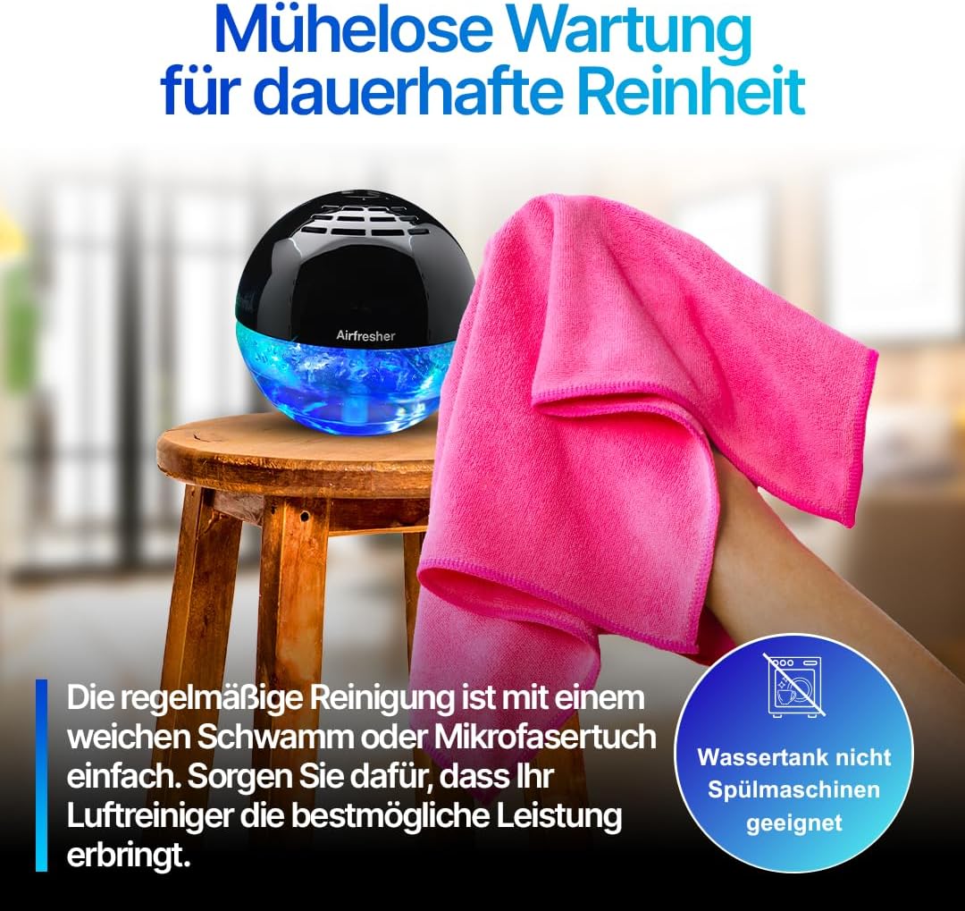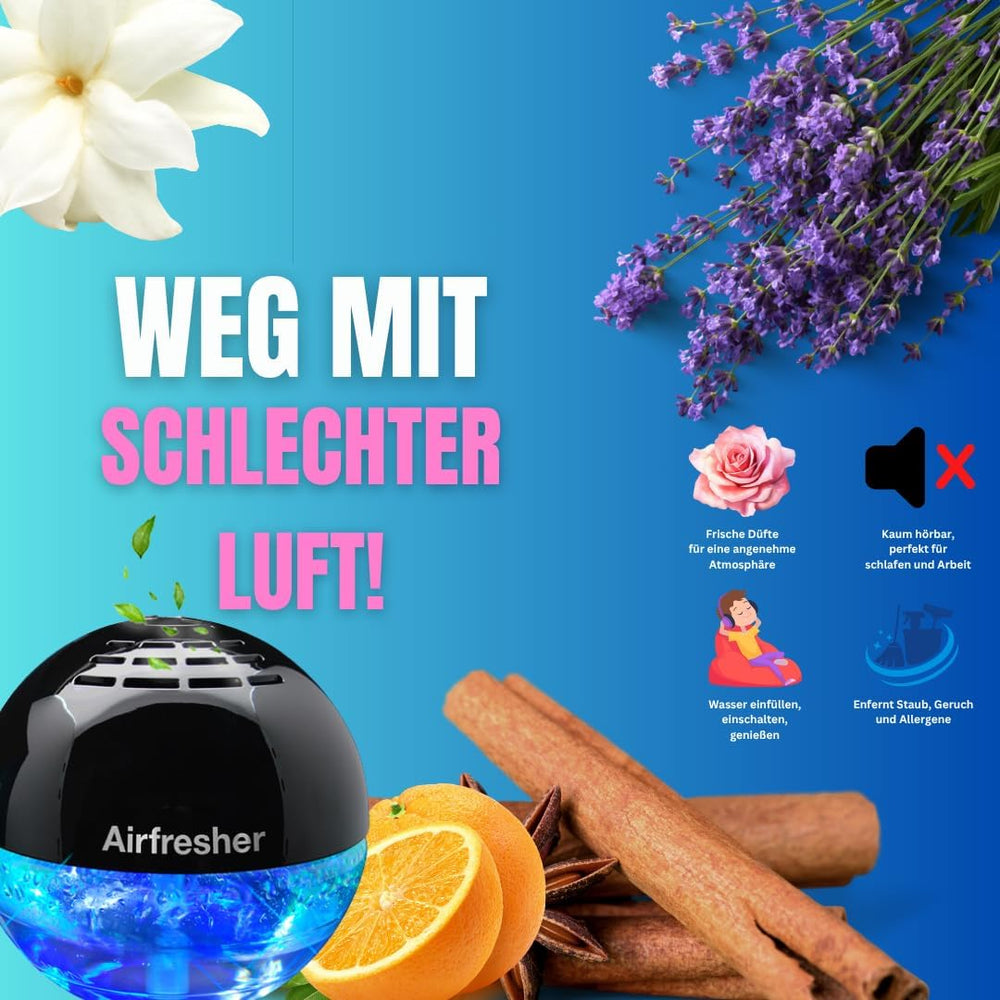 - SEHR LEISE: Mit einer Betriebslautstärke von nur ca. 35 db ist der Raumerfrischer sehr leise und im normalen Haushalt kaum hörbar