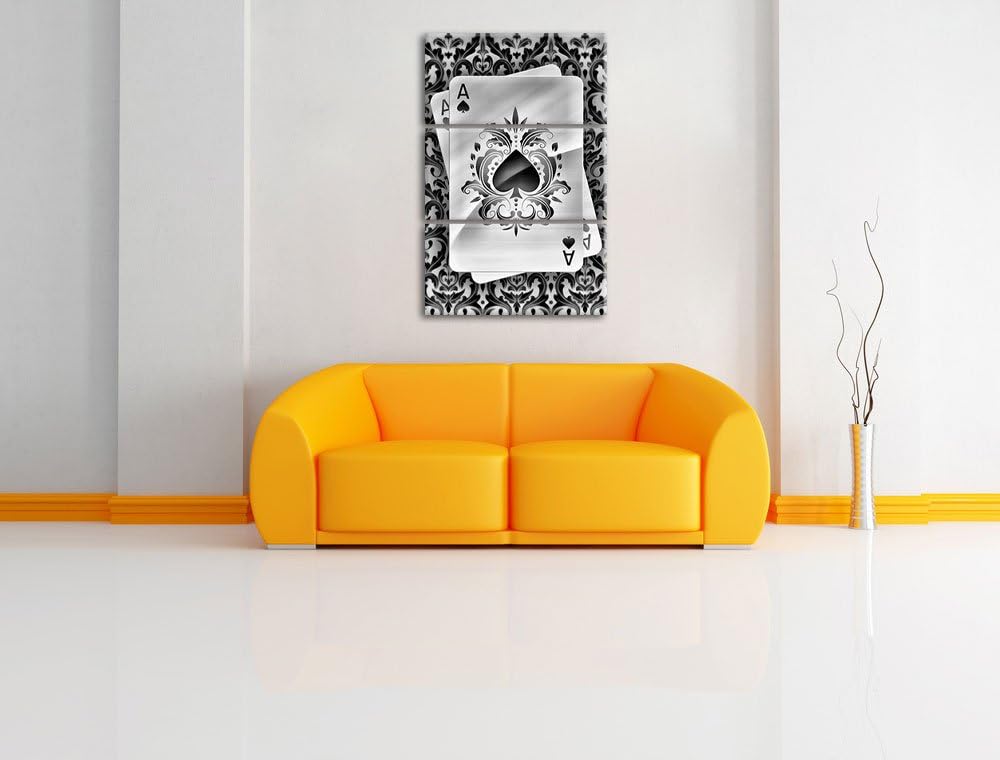 Ass Pik Spielkarte als Leinwandbild | Grösse: 3 Teilig (120x80) | Wandbild| Kunstdruck | fertig besp