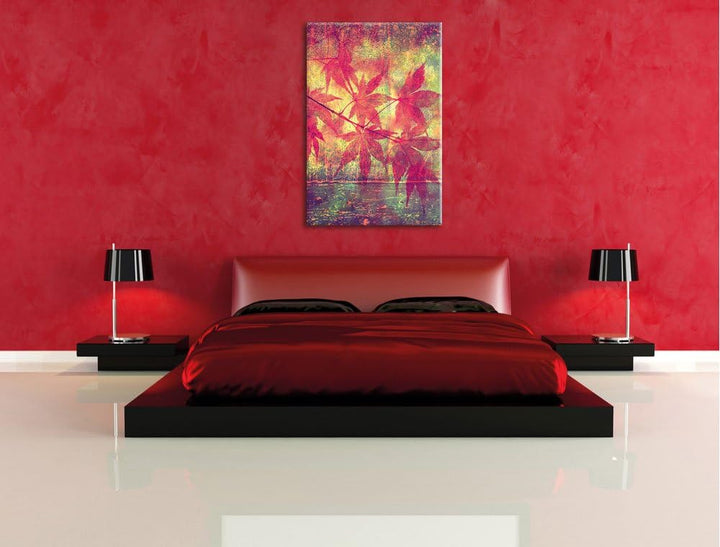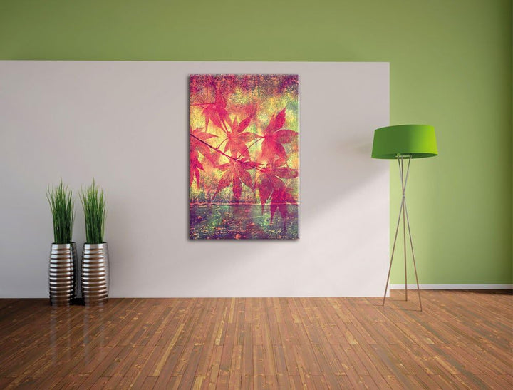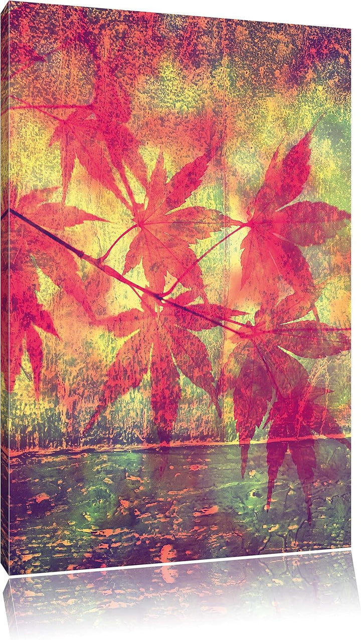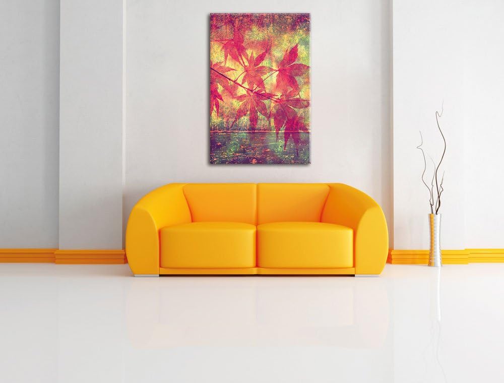 Ast mit pinken Blättern, Format: 100x70 auf Leinwand, XXL riesige Bilder fertig gerahmt mit Keilrahm
