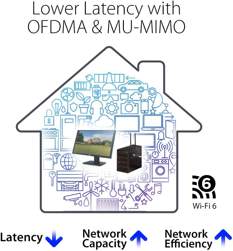 - 802.11ax-Technologie: Mit OFDMA und MU-MIMO bietet Wi-Fi 6 schnellere, stabilere und effizientere Übertragungen bei gleichzeitiger Verbindung mehrerer Geräte