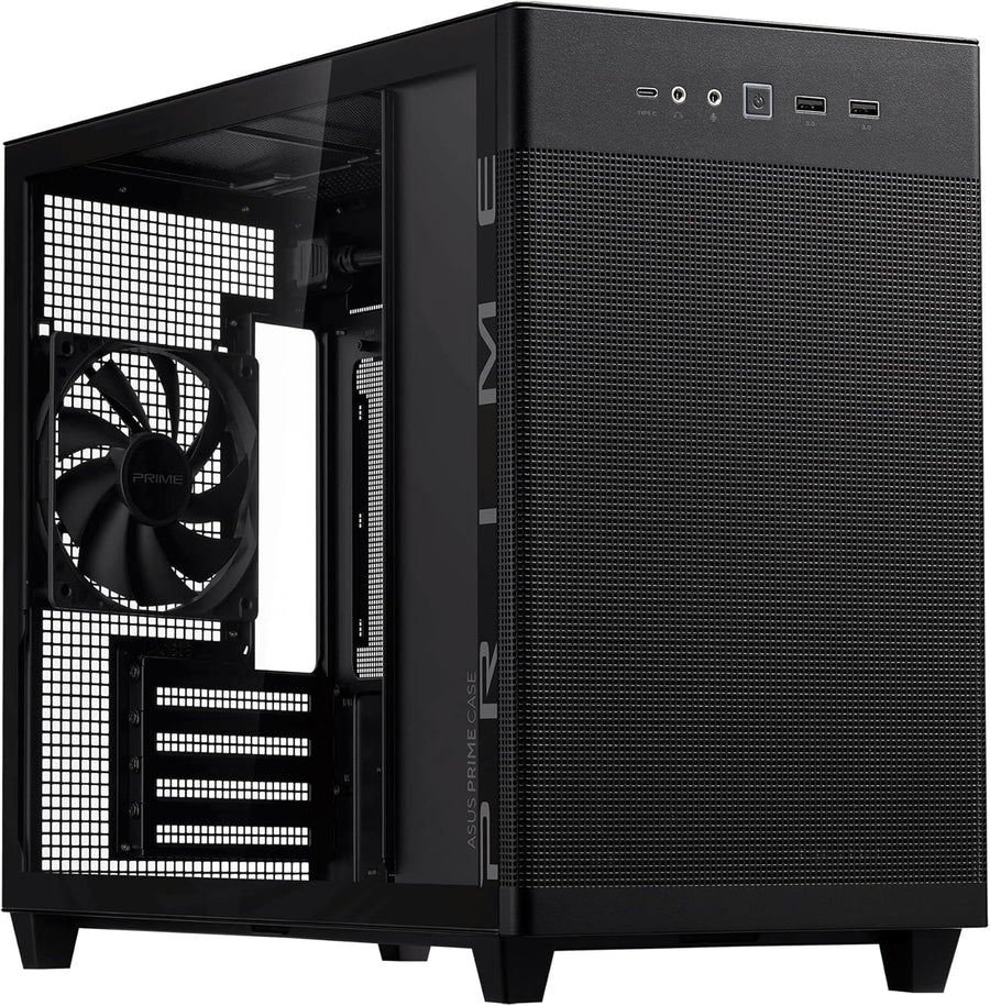 ASUS Prime AP201 MicroATX Gehäuse schwarz (33 Liter, unterstützt 280- & 360-mm-Kühler, Grafikkarten