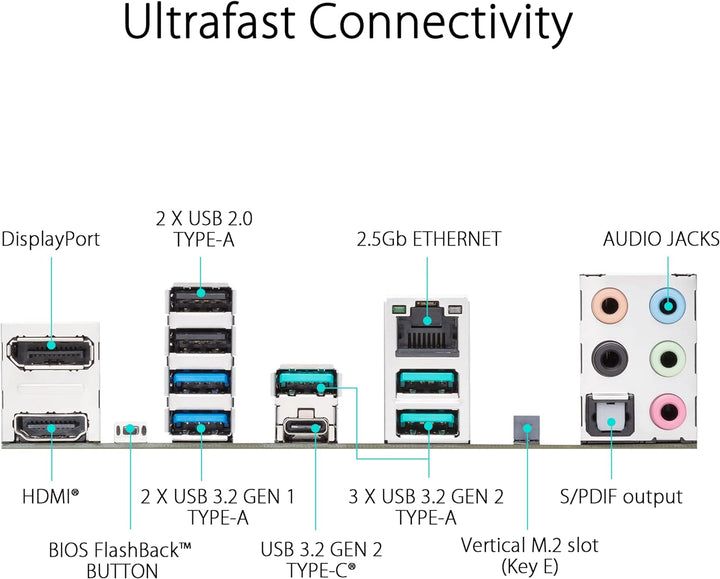 - Konnektivität der nächsten Generation: M.2 PCIe 5.0, USB 3.2 Gen2x2 Type-C, Front USB 3.2 Gen 1 Type-C, USB4 Unterstützung