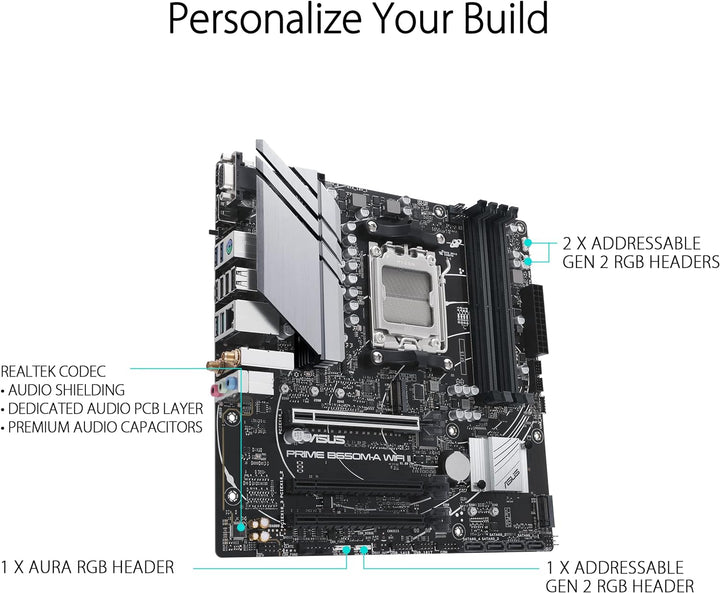 - Aura Sync RGB-Beleuchtung Integrierte adressierbare Gen 2-Header und Aura RGB-Header für RGB-LED-Streifen, die leicht mit Aura Sync-fähiger Hardware synchronisiert werden können