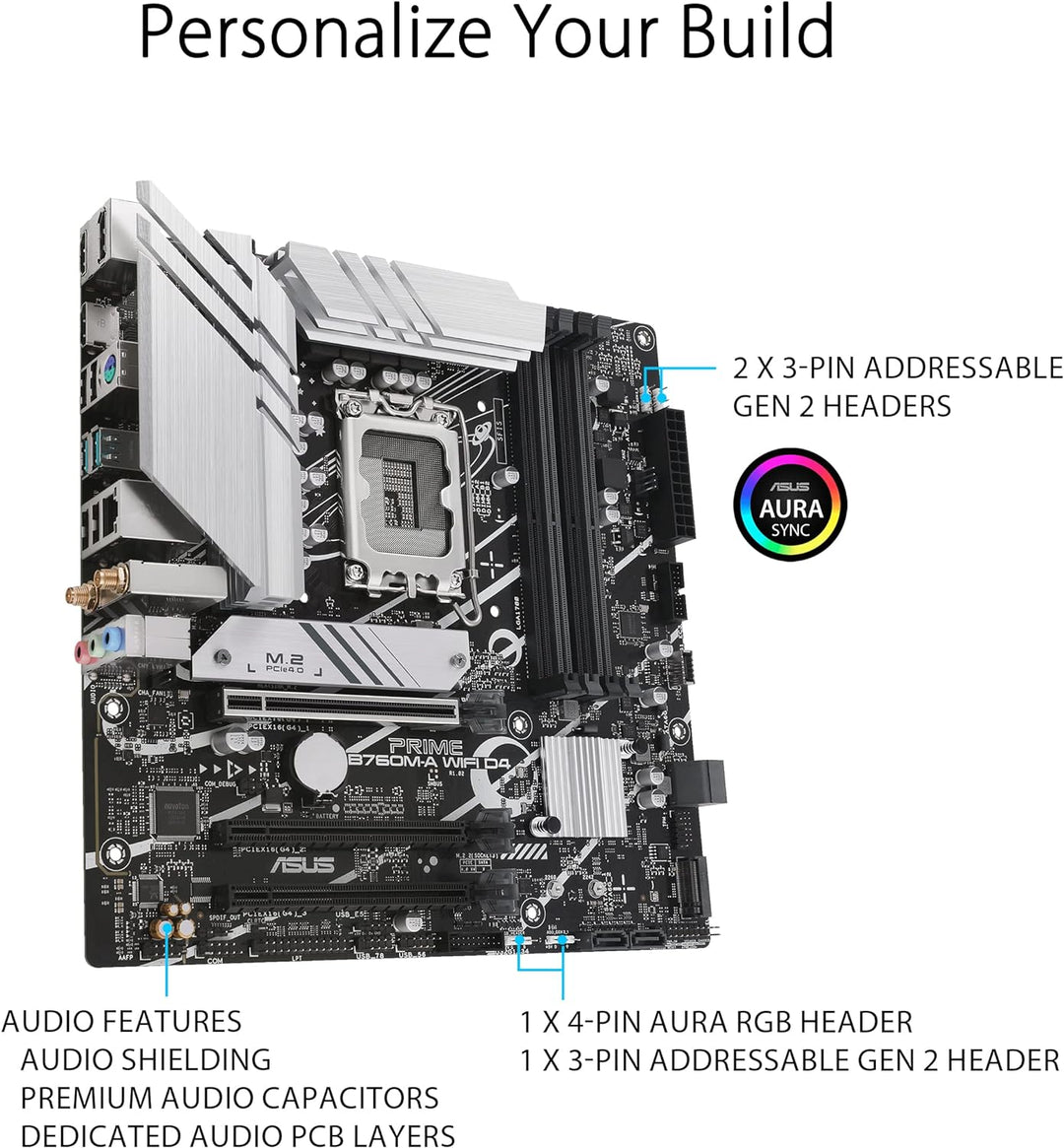 - Aura Sync RGB-Beleuchtung Integrierte adressierbare Gen 2-Header und Aura RGB-Header für RGB-LED-Streifen, die leicht mit Aura Sync-fähiger Hardware synchronisiert werden können
