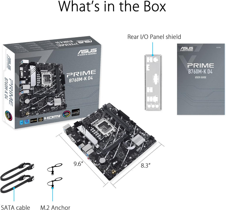 - ASUS Prime B760M-K Gaming Mainboard Sockel Intel LGA 1700 (Intel B760, mATX, DDR5 Speicher, 2X PCIe 4.0 M.2, Aura Sync)