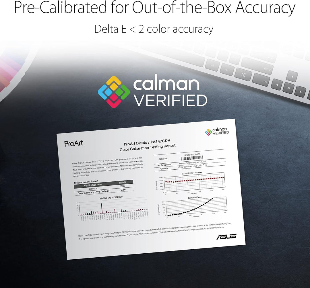 - Calman verifiziert und werkseitig kalibriert auf Delta E < 2 für aussergewöhnliche Farbgenauigkeit, mit 100% sRGB und 100% Rec. 709 Abdeckung