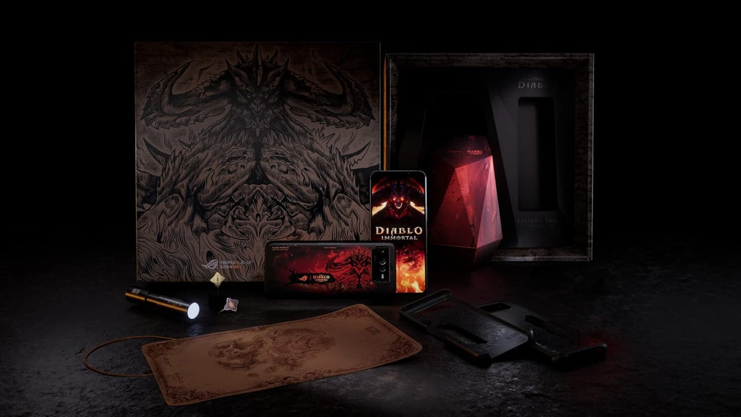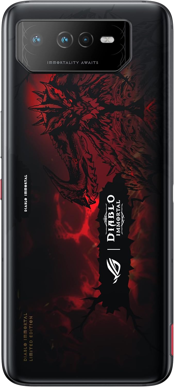 • IKONISCHES SMARTPHONE DESIGN: Basierend auf dem hochgelobten ROG Phone 6 erinnern die Details der Diablo Immortal Edition Details an das kultige Kampfspiel mit seiner albtraumhaften Menagerie von Dämonen und Monstern.