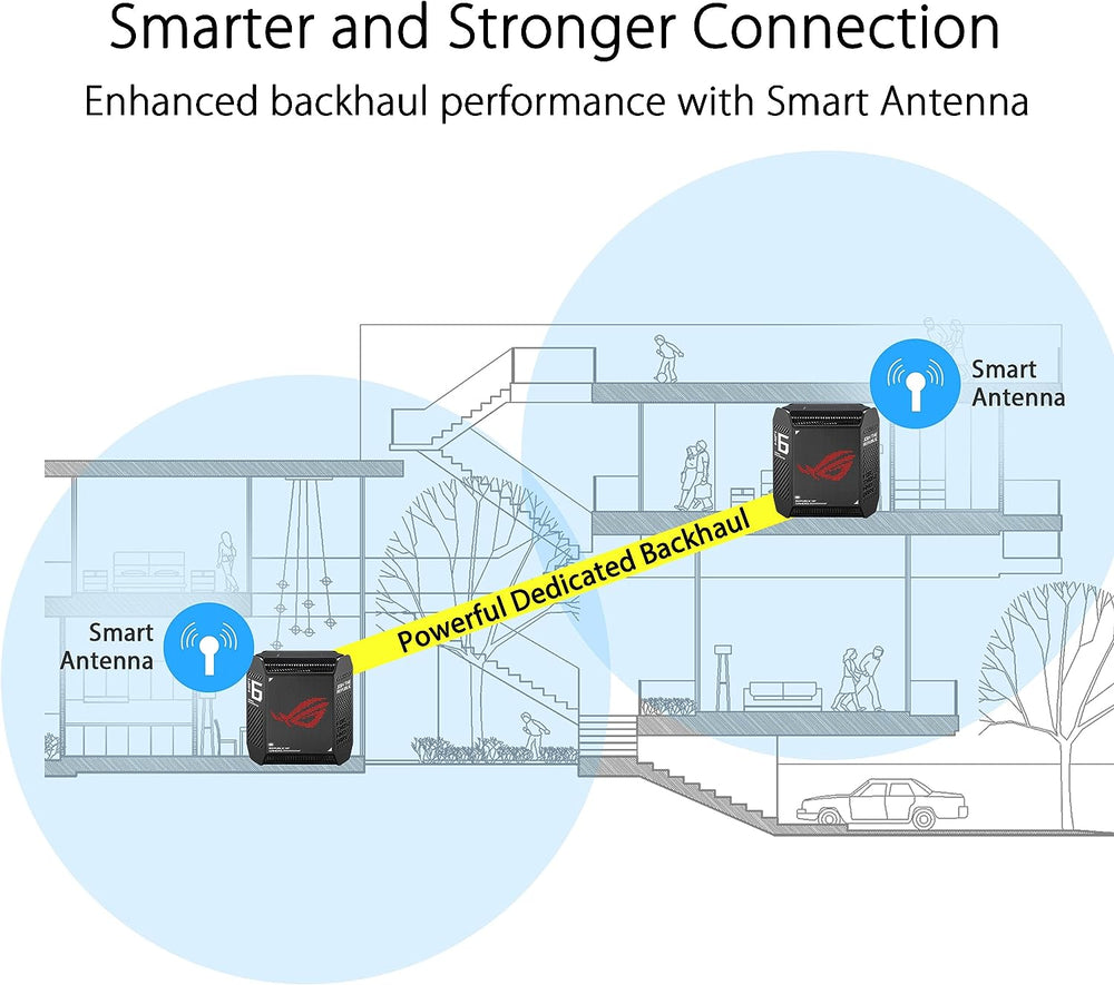 - Hocheffiziente Leistung – WiFi 6 Tri-Band-Gaming-Mesh-System mit dediziertem Hochleistungs-Backhaul und 160-MHz-Kanälen, die ultraschnelle Geschwindigkeiten von bis zu 10.000 Mbit/s ermöglichen.
