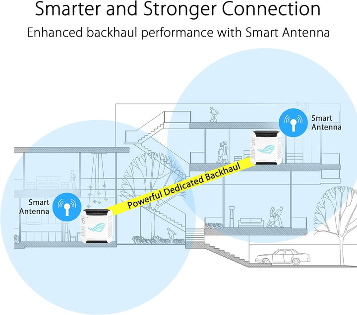 - Hocheffiziente Leistung – WiFi 6 Tri-Band-Gaming-Mesh-System mit dediziertem Hochleistungs-Backhaul und 160-MHz-Kanälen, die ultraschnelle Geschwindigkeiten von bis zu 10.000 Mbit/s ermöglichen.