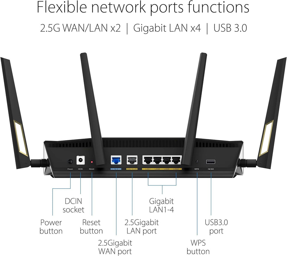 ASUS RT-AX88U Pro AX6000 Dual Band WLAN kombinierbarer Router (Tethering als 4G und 5G Router-Ersatz