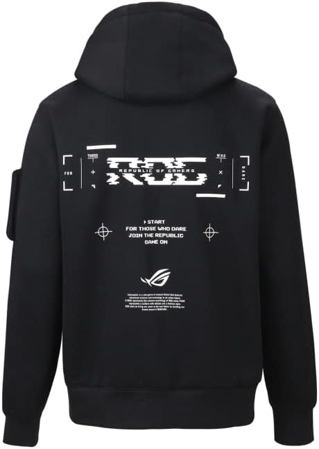 PRODUKTBESCHREIBUNGEN ROG Pixel Game Jacket hat eine grosse, verstellbare Kapuze mit Platz für ein grosses Headset. Aus weichem, schwerem Frottee-Fleece für Wärme. Es verfügt über Retro-inspirierte gedruckte 8-Bit-Pixel-Grafiken und einen Frontreissverschluss.