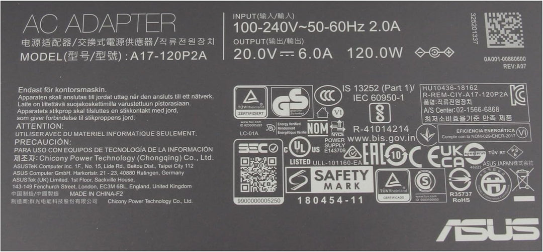 - Dieses Ladegerät ist geeignet für Asus Notebooks. Farbe: schwarz, Bauform: kantig, Lieferumfang: inkl. Netzkabel (3-poliges Kabel C5), Masse (Länge/Breite/Höhe): 138 mm / 68 mm / 23 mm