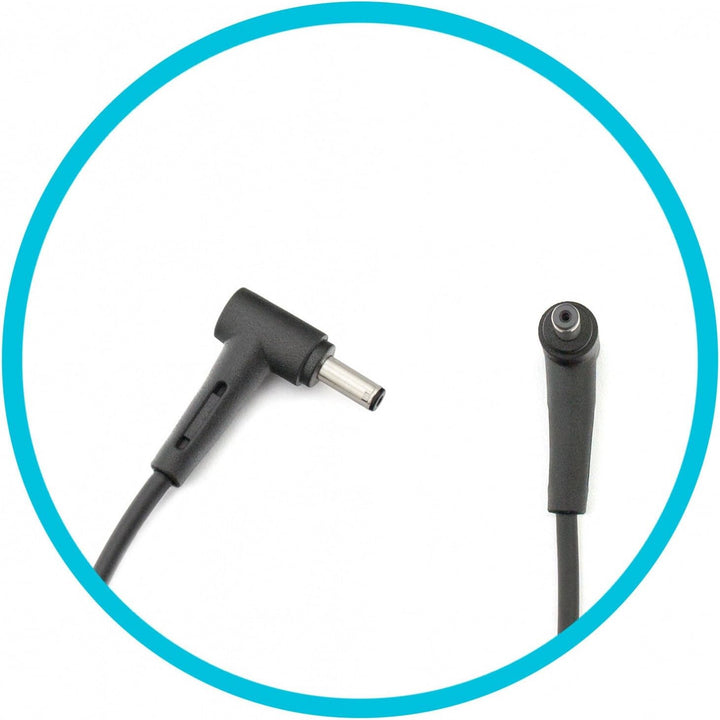 - Steckertyp: rund, Steckerform: 90° abgewinkelt, Aussendurchmesser des Steckers: 4,0 mm, Innendurchmesser des Steckers: 1,2 mm, Länge des Steckers: 9,8 mm, Stift im Stecker: Nein, Länge des Anschlusskabels vom Netzteil zum Notebook: ca. 2,00 m