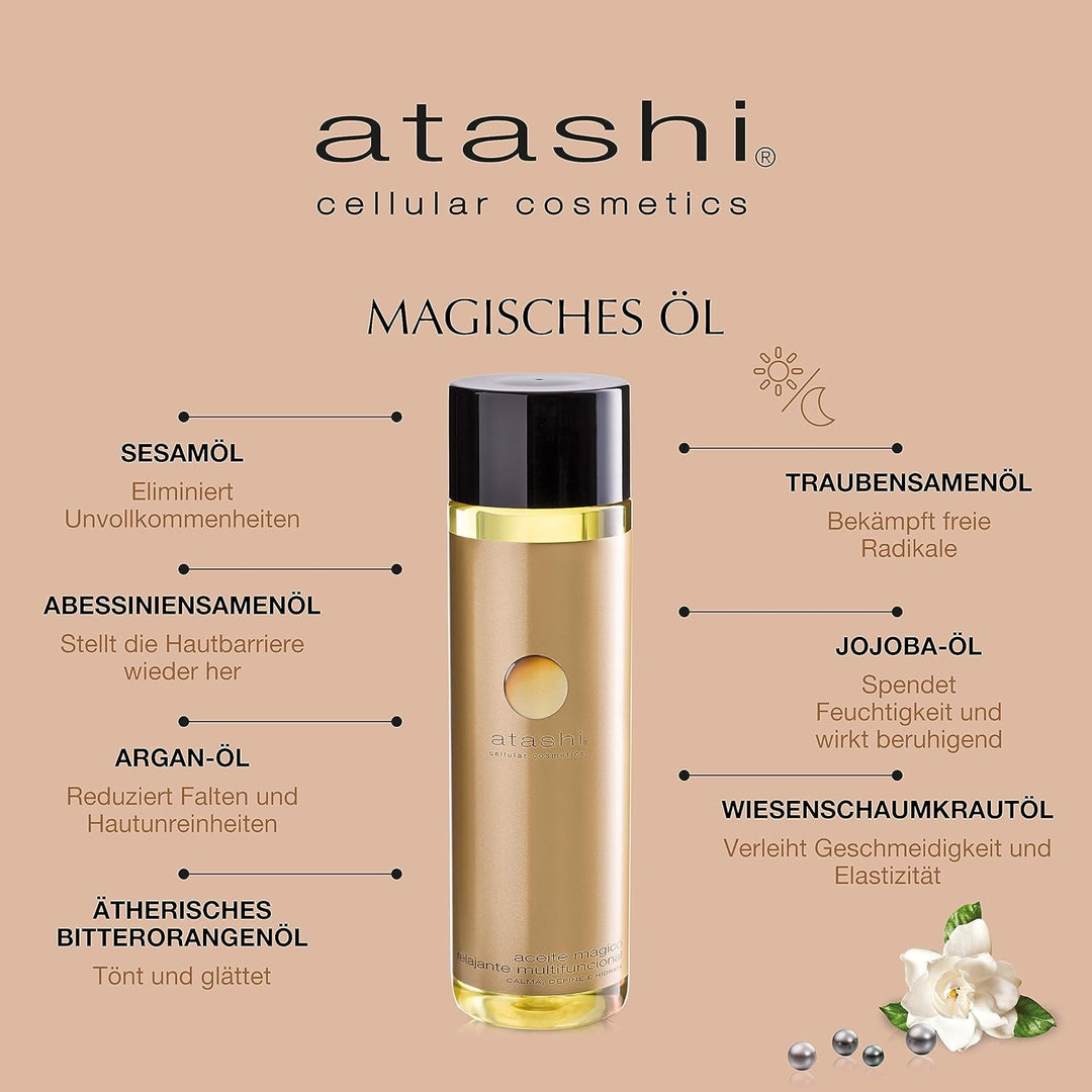 - Das Magic Oil besteht aus 7 exklusiven, reinen und biologischen Ölen, die die Haut vor täglichem Stress schützen, einer direkten Ursache der Hautalterung.