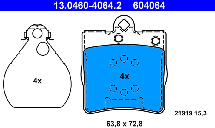 - Breite: 63,8 mm, Höhe: 72,8 mm, Dicke/Stärke: 15,3 mm, nicht für Verschleisswarnanzeiger vorbereitet, exkl. Verschleisswarnkontakt, Bremssystem: ATE, ECE-R90 Strassenzulassung
