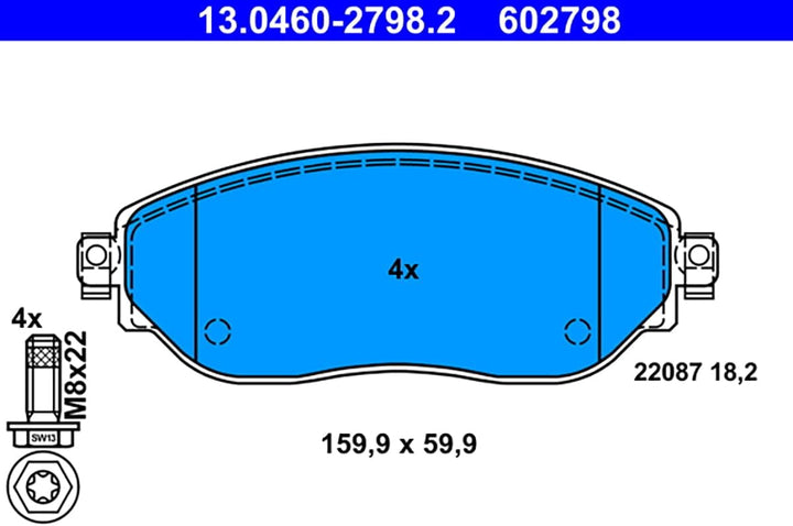 - Breite: 159,9 mm, Höhe: 59,9 mm, Dicke/Stärke: 18,2 mm, nicht für Verschleisswarnanzeiger vorbereitet, exkl. Verschleisswarnkontakt, Anzahl der Schrauben: 4, Bremssystem: Lucas / TRW, ECE-R90 Strassenzulassung