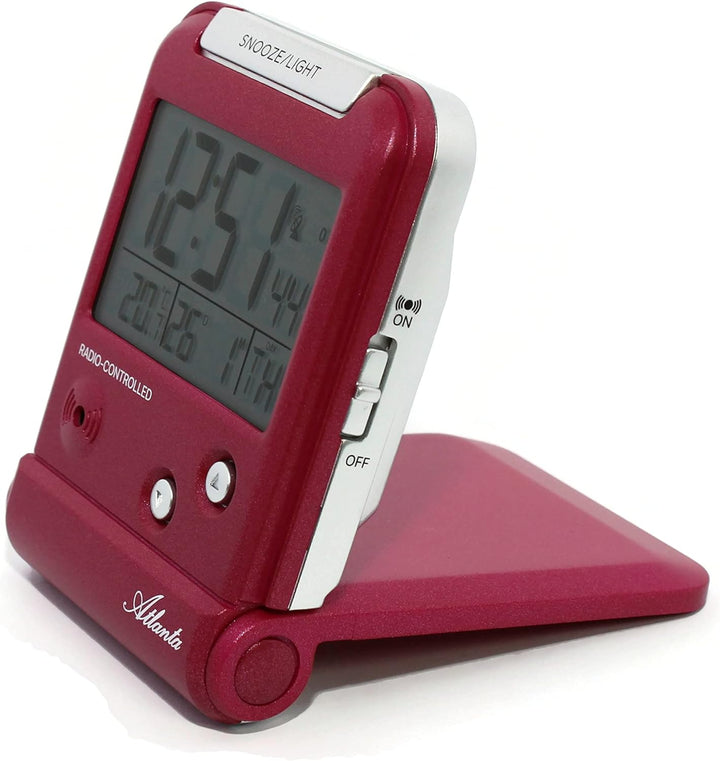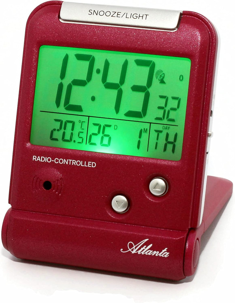 Atlanta Funkwecker Digital LCD-Anzeige Reisewecker mit Klappe Temperatur Rot - 1806/1