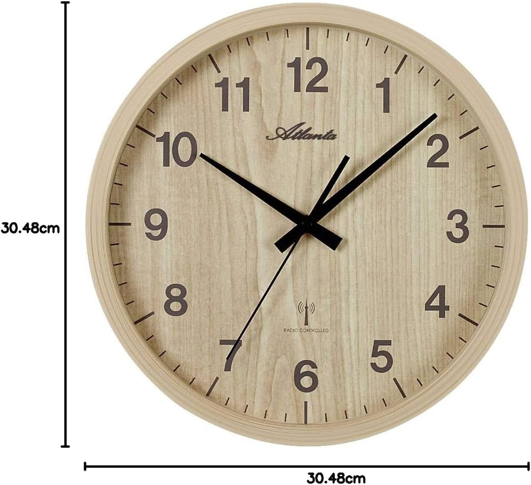 - ABMESSUNGEN: Gehäusedurchmesser 30,5 cm | FUNKTIONEN: Stunde, Minute, Sekunde | GEHÄUSE: Verschraubtes Kunststoffgehäuse in Buchen-Optik | MATERIAL: Kunststoff in Holzoptik, Glas | UHRGLAS: Mineralglas | UHRWERK: Geräuscharmes Funkuhrwerk |