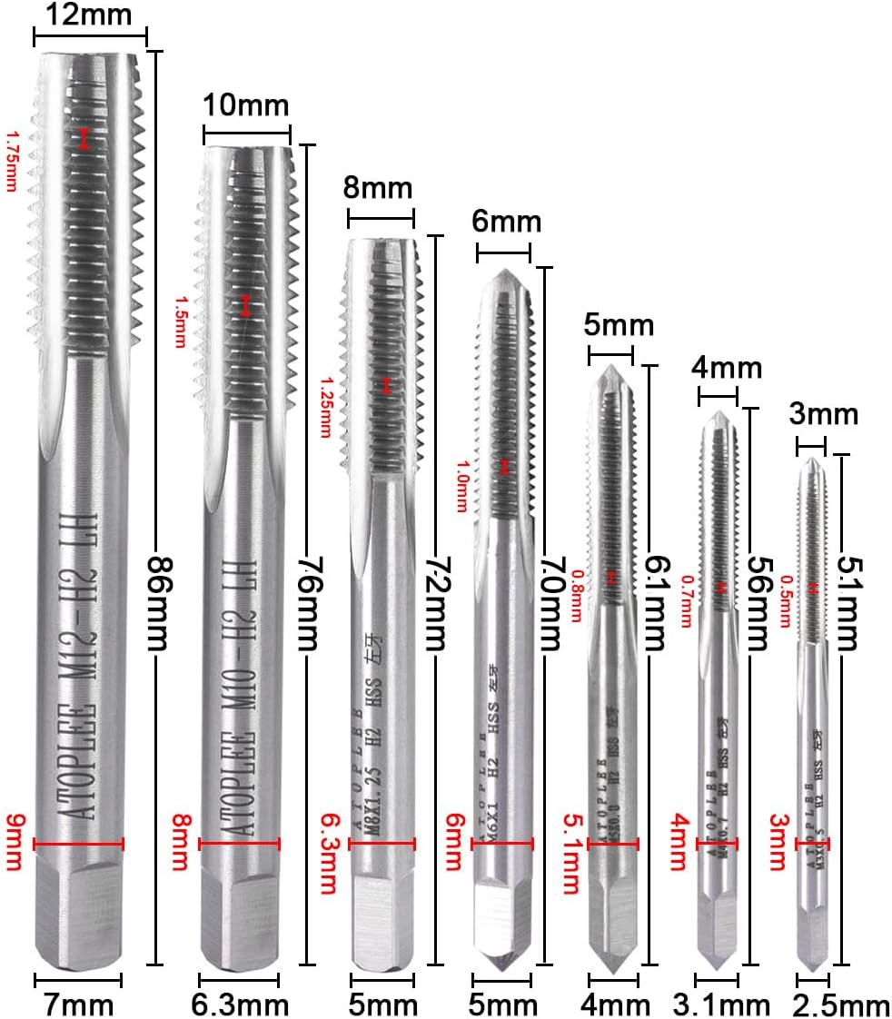 - {Type}M3*0.5/M4*0.7/M5*0.8/M6*1.0/M8*1.25/M10*1.5/ M12*1.75HSS.