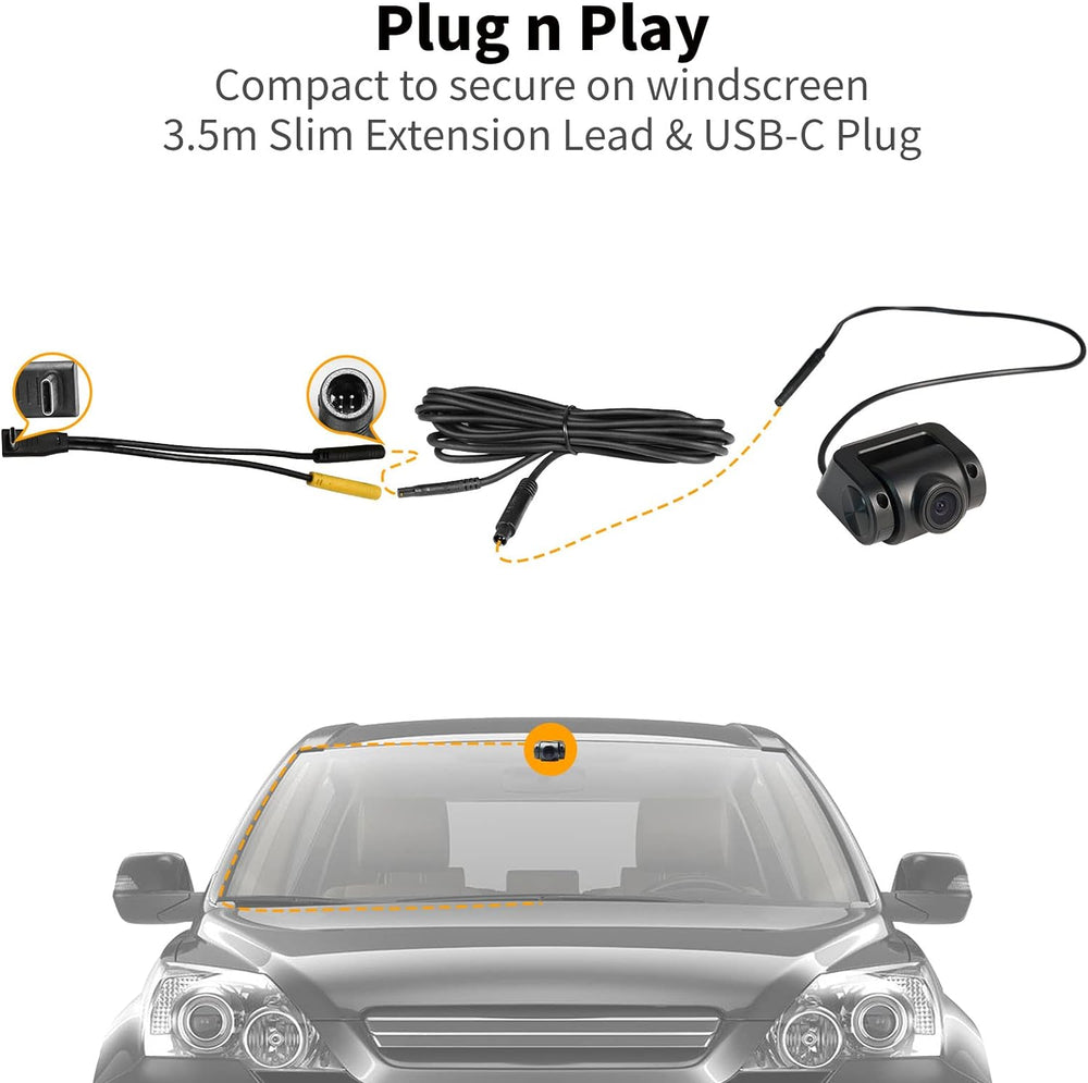 - 【Die Bedeutung der Frontkamera】 Die Frontkamera AC-FCR01W kann Ihnen helfen, die Situation im toten Winkel vor Ihrem Auto zu überprüfen und einen angemessenen Abstand zum vorderen Auto zu bestimmen. Wird mit einem USB-C-Cam-Stecker geliefert, der