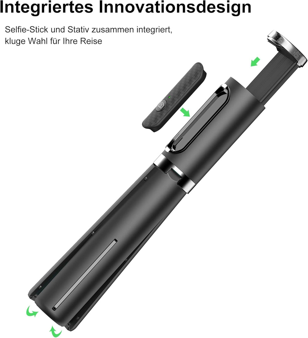 - [Super leicht und praktisch zu transportieren] - Dank seines versteckten ausziehbaren Designs misst der Selfie-Stick nur 19,5 cm gefaltet und 79,5 cm voll ausgezogen. Du kannst den Selfie-Stick in der Tasche oder in einem kleinen Rucksack verstauen. Wenn