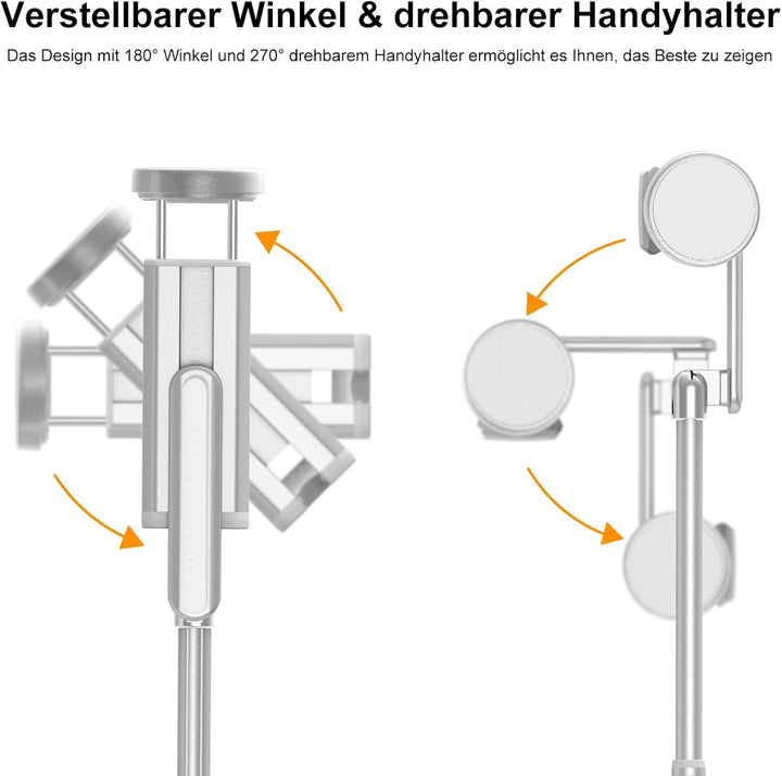 - ⭐ [Verstellbare Halterung und um 360° Drehbare Telefonhalterung] - Der ATUMTEK Bluetooth Selfie Stange verfügt über eine um 360° drehbare Halterung, die die handyhalterung unterstützt die horizontal und vertikal verstellt werden kann. Die um 180° verstellbare Halterung ermöglicht es, den perfekten winkel für die aufnahme von fotos/videos auszuwählen. Der handyhalter kann handys mit einer breite von bis zu 3,42 Zoll (8,68 cm) aufnehmen.
