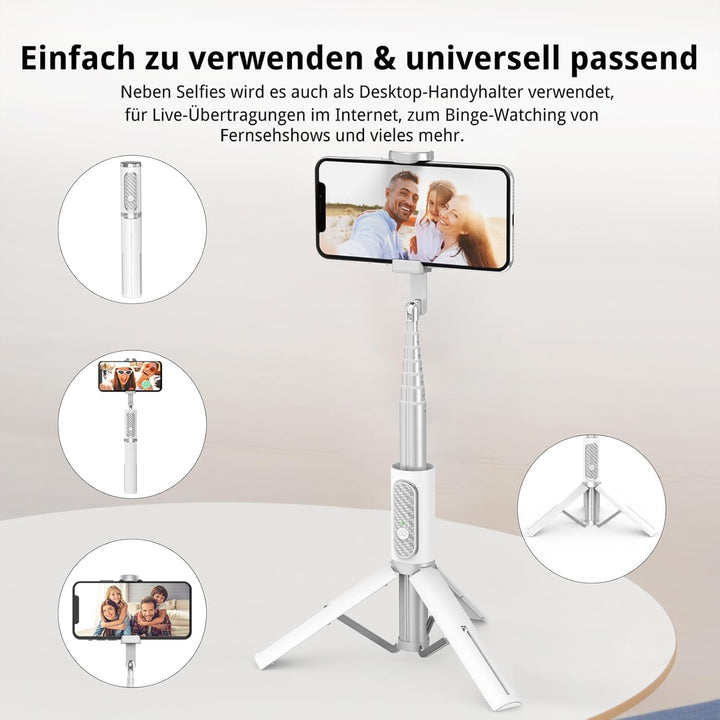 - ⭐ [Einfach zu Bedienen und Universell Einsetzbar] - Schnelle Bluetooth Verbindung mit Ihrem handy. Sie können diesen Selfiestick ganz einfach mit der hand bedienen, indem sie auf den auslöser drücken. Sie können ihn für ein selfie in nahaufnahme benutzen oder ausziehen, um eine grössere szenerie zu erhalten. Darüber hinaus können sie das stativ öffnen um es als handyhalterung auf dem Tisch zu benutzen, um Live-Übertragungen ins Internet aufzunehmen, TV-Shows anzusehen, etc.