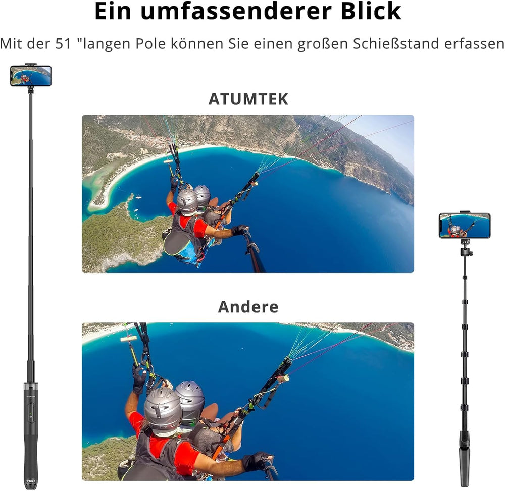 - ⭐[Erfassung von breiterer Ansicht] Dieser Bluetooth selfie stick, welcher bis zu 51 Zoll mit 7 verstellbaren stangen ist, ermöglicht Ihnen, breitere Ansichten zu erfassen, während Sie aufnehmen oder fotos machen. Er ist ideal für familientreffen,