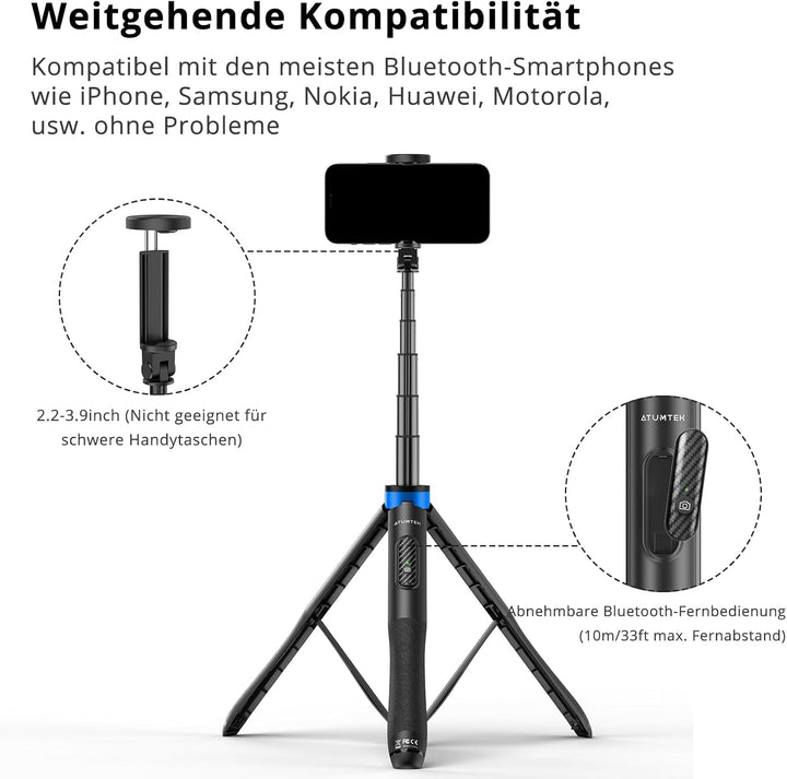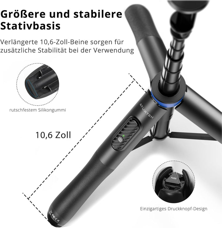- ⭐[Stabile und grosse Dreibein-Grundlage] Dieser ATUMTEK handy selfie stick hat eine grosse 31.5 Zoll dreibein-grundlage mit drei rutschfesten silikonpolstern an den Füssen, welche grösstenteils jegliche schiefe oder kippende situationen vermeiden