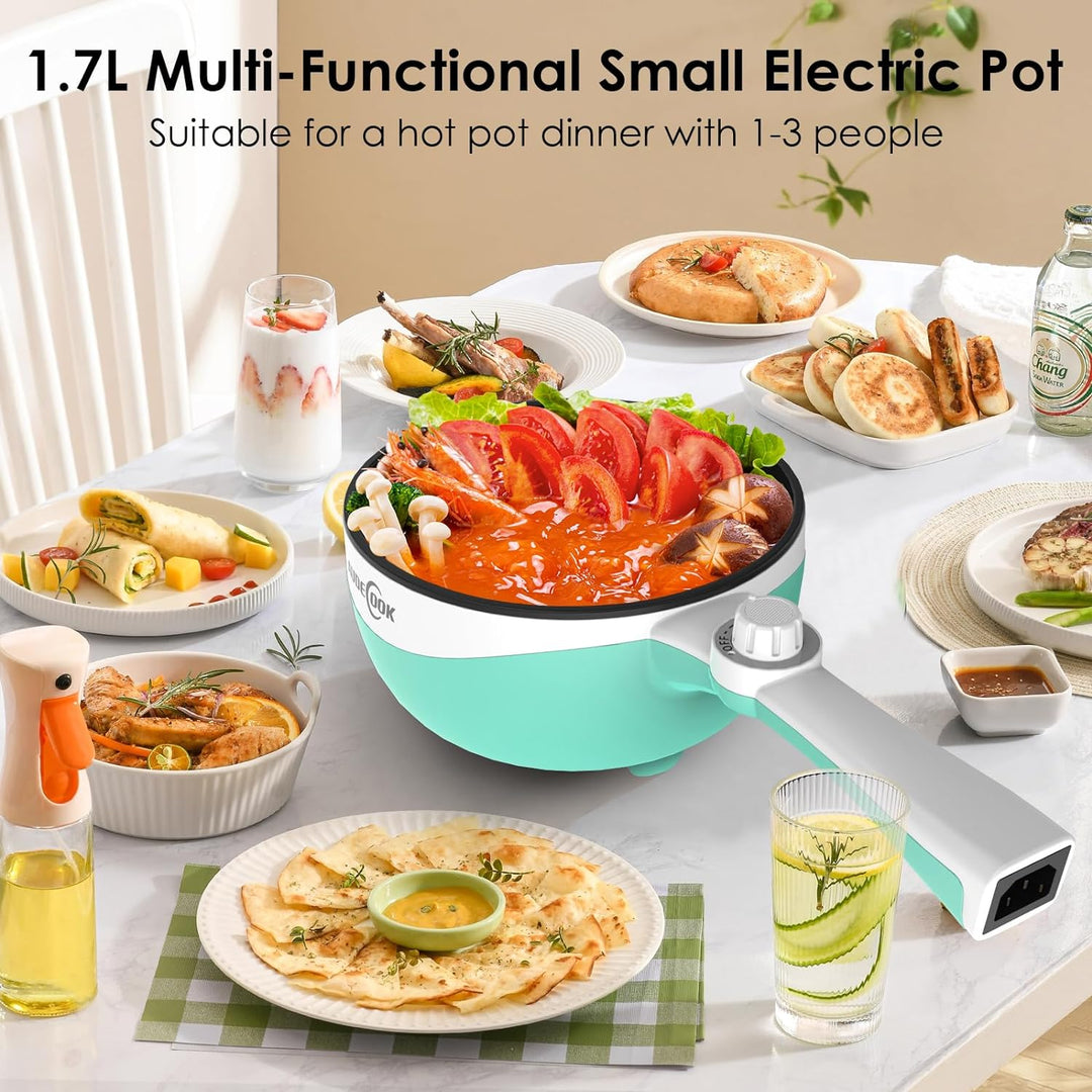 - 🍗【Tragbarer Topf mit 1,7 l Fassungsvermögen】Tragbarer Topf hat ein Fassungsvermögen von 1,7L, niedliches Design und leicht zu verstauen. Dieser Mini-Elektrokochtopf ist besonders geeignet für Menschen, die gerne kochen und sich gesund ernähren