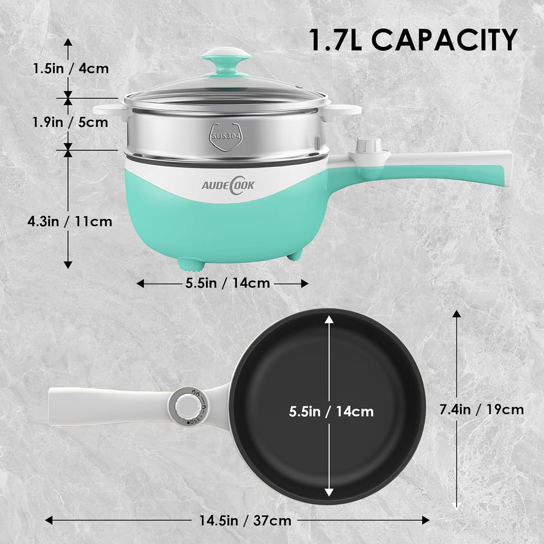 - 🍗【Tragbarer Topf mit 1,7 l Fassungsvermögen】Tragbarer Topf hat ein Fassungsvermögen von 1,7L, niedliches Design und leicht zu verstauen. Dieser Mini-Elektrokochtopf ist besonders geeignet für Menschen, die gerne kochen und sich gesund ernähren