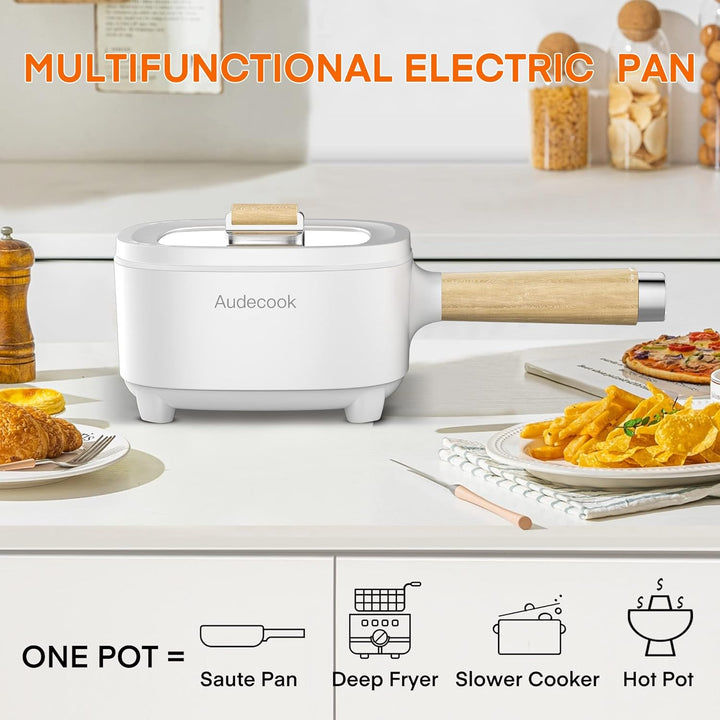 - Multifunktionaler elektrischer Hot Pot - Audecook Hot Pot elektrisch mit doppelter Stromversorgung am Ende (200W / 1000W), mit dem Sie die Temperatur einfach steuern können, um unterschiedliche Kochanforderungen zu erfüllen: 200W Leistung für die Zubereitung von Omelettes, Ramen, Pfannkuchen; 1000W Leistung zum Dämpfen von Lachs, Pommes Frites, Kochen von Hot Pot, Sautieren von Gemüse und Steaks. Jederzeit ohne Herd kochen und anbraten!