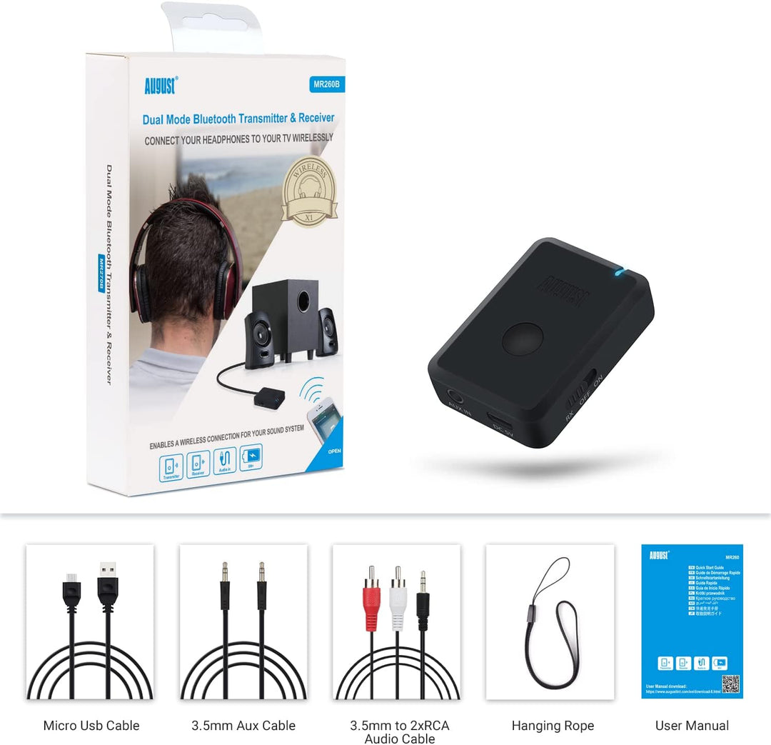 - WIEDERAUFLADBARER USB-C-ADAPTER - Dank der effizienten USB-C-Ladung ist das Bluetooth Adapter MR260 in weniger als 2 Stunden einsatzbereit und kann bis zu 13 Stunden lang Audio übertragen oder empfangen. Mit diesem wiederaufladbaren AUX-Bluetooth