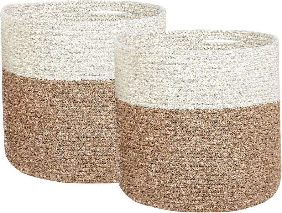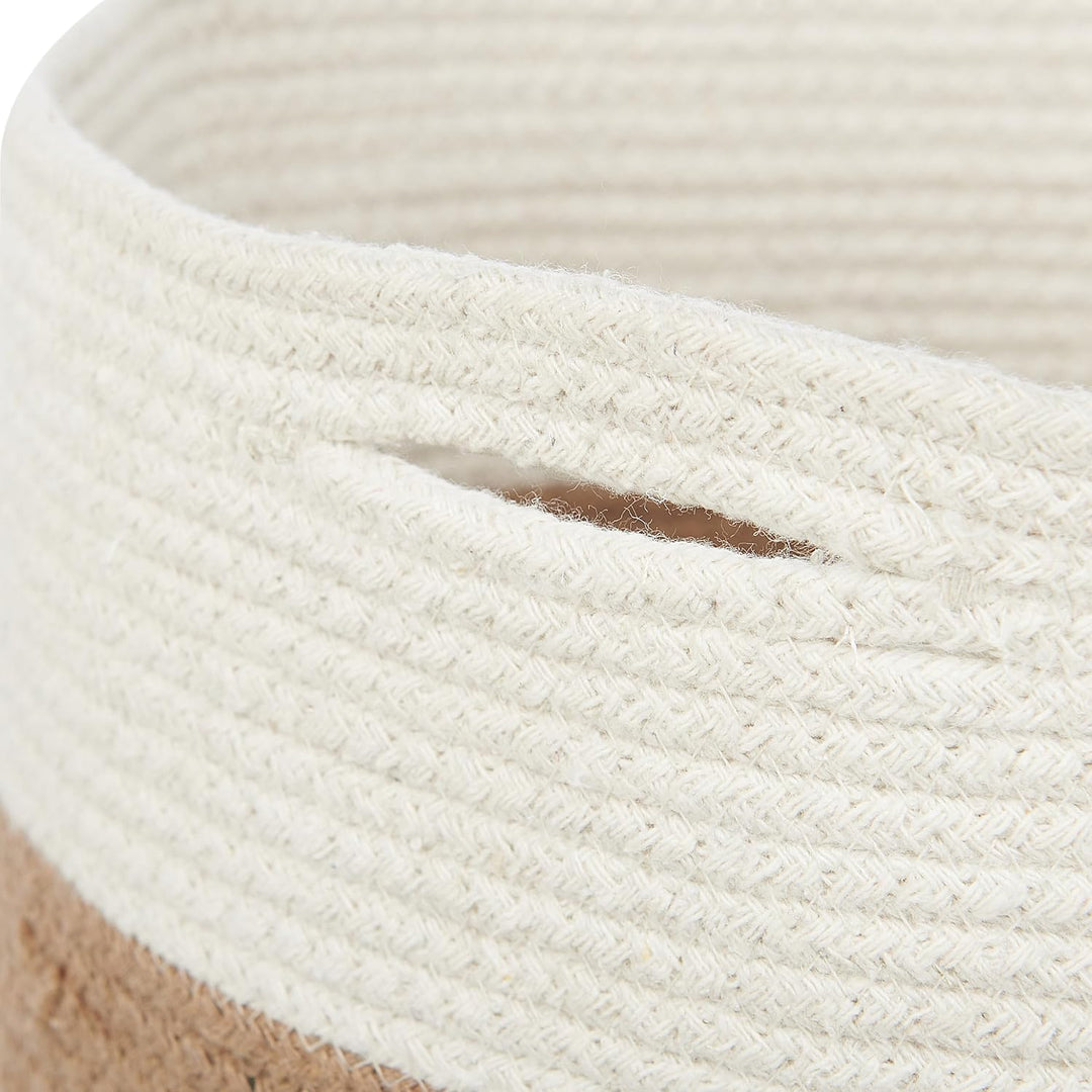 - Zwei moderne Stoffkörbe in Beige und Weiss im Boho-Stil