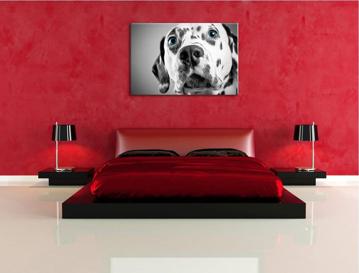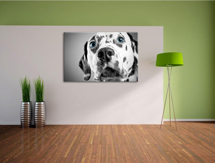 aufmerksamer Dalmatiner schwarz/weiss Format: 100x70 auf Leinwand, XXL riesige Bilder fertig gerahmt
