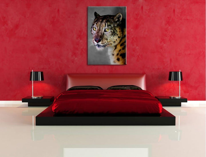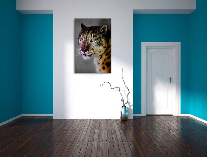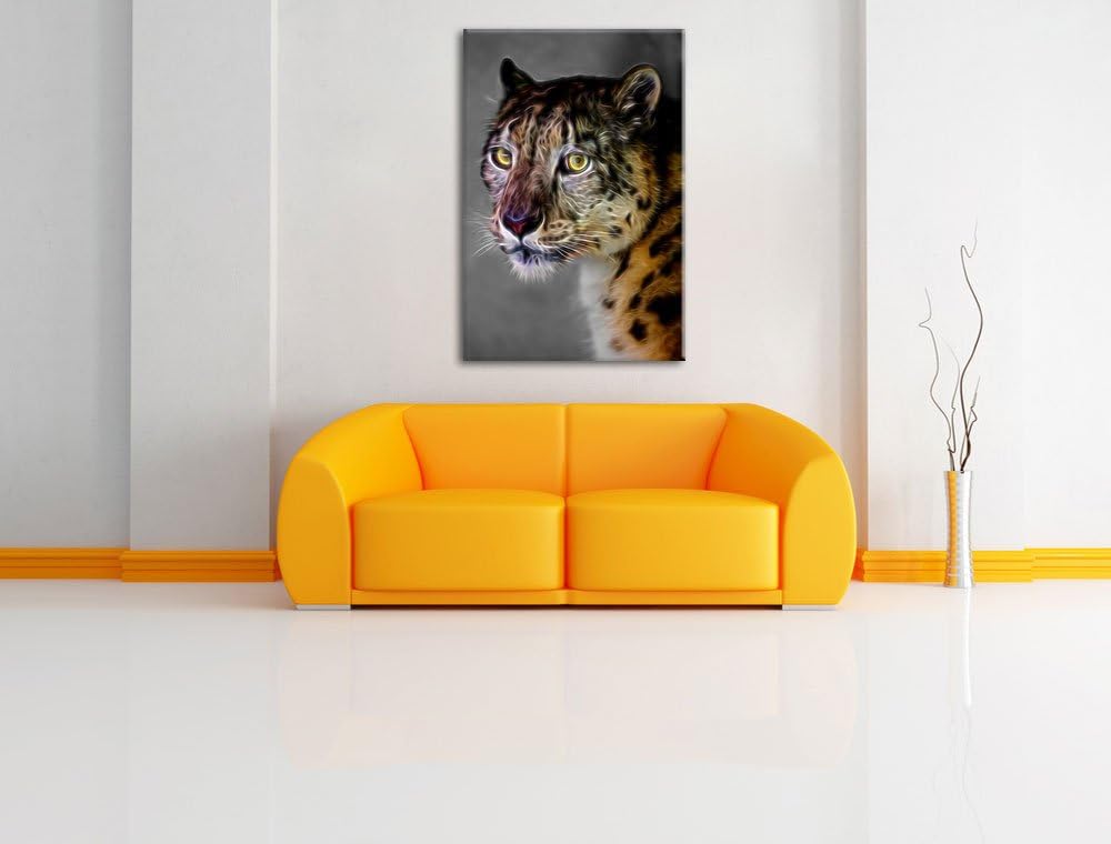 aufmerksamer Schneeleopard schwarz/weiss Deluxe Format: 100x70 cm auf Leinwand, XXL riesige Bilder f