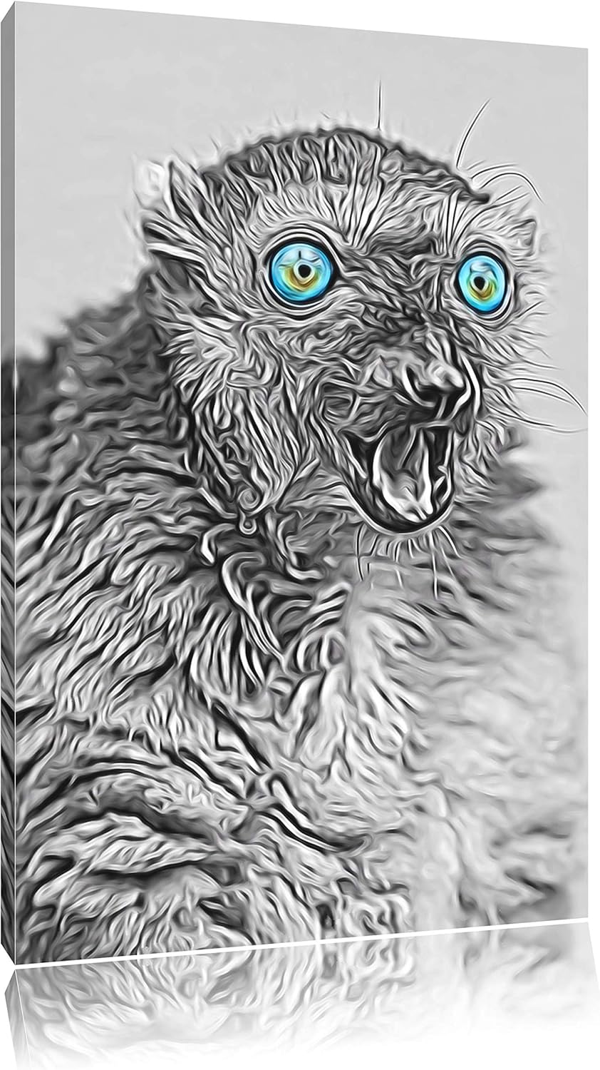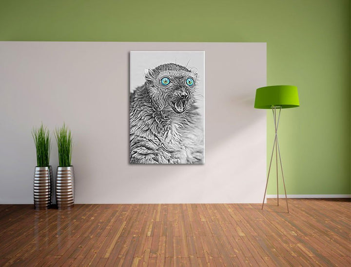 aufmerksamer seltener Blauaugenmaki schwarz/weiss Deluxe Format: 100x70 cm auf Leinwand, XXL riesige