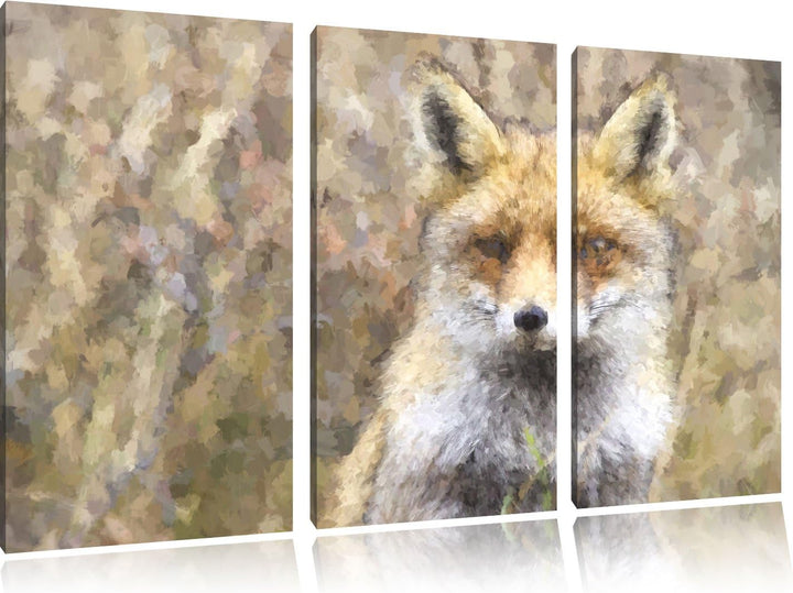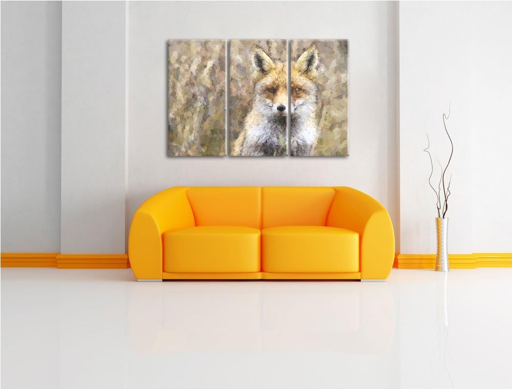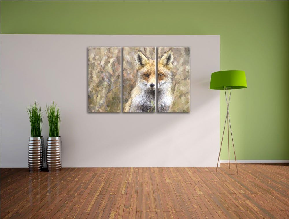 aufmerksamer Fuchs im Geäst NewArt 3-Teiler Leinwandbild 120x80 Bild auf Leinwand, XXL riesige Bilde