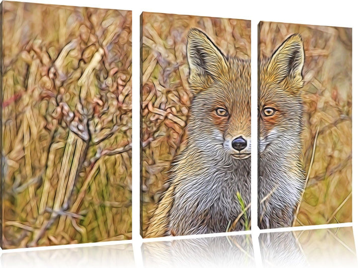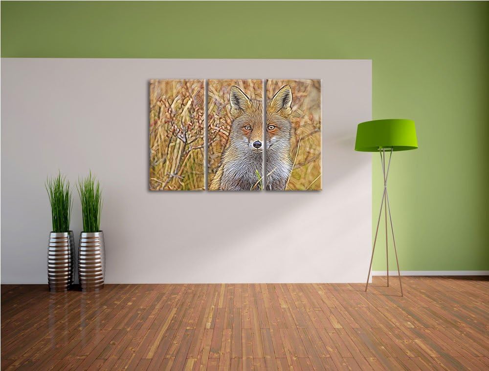aufmerksamer Fuchs im Geäst NewArt 3-Teiler Leinwandbild 120x80 Bild auf Leinwand, XXL riesige Bilde