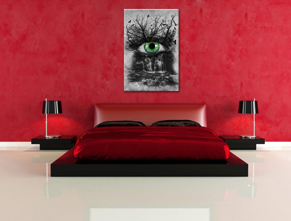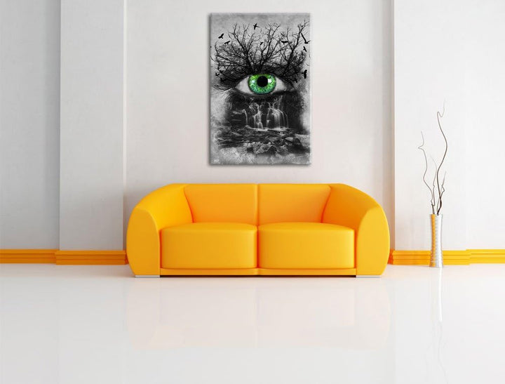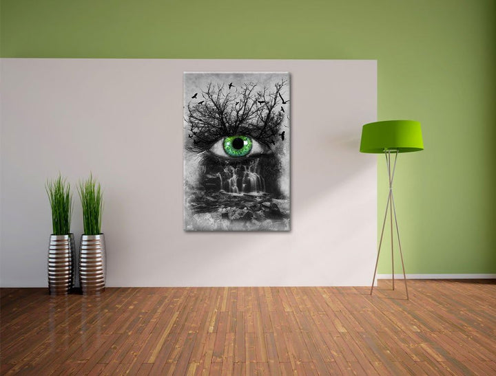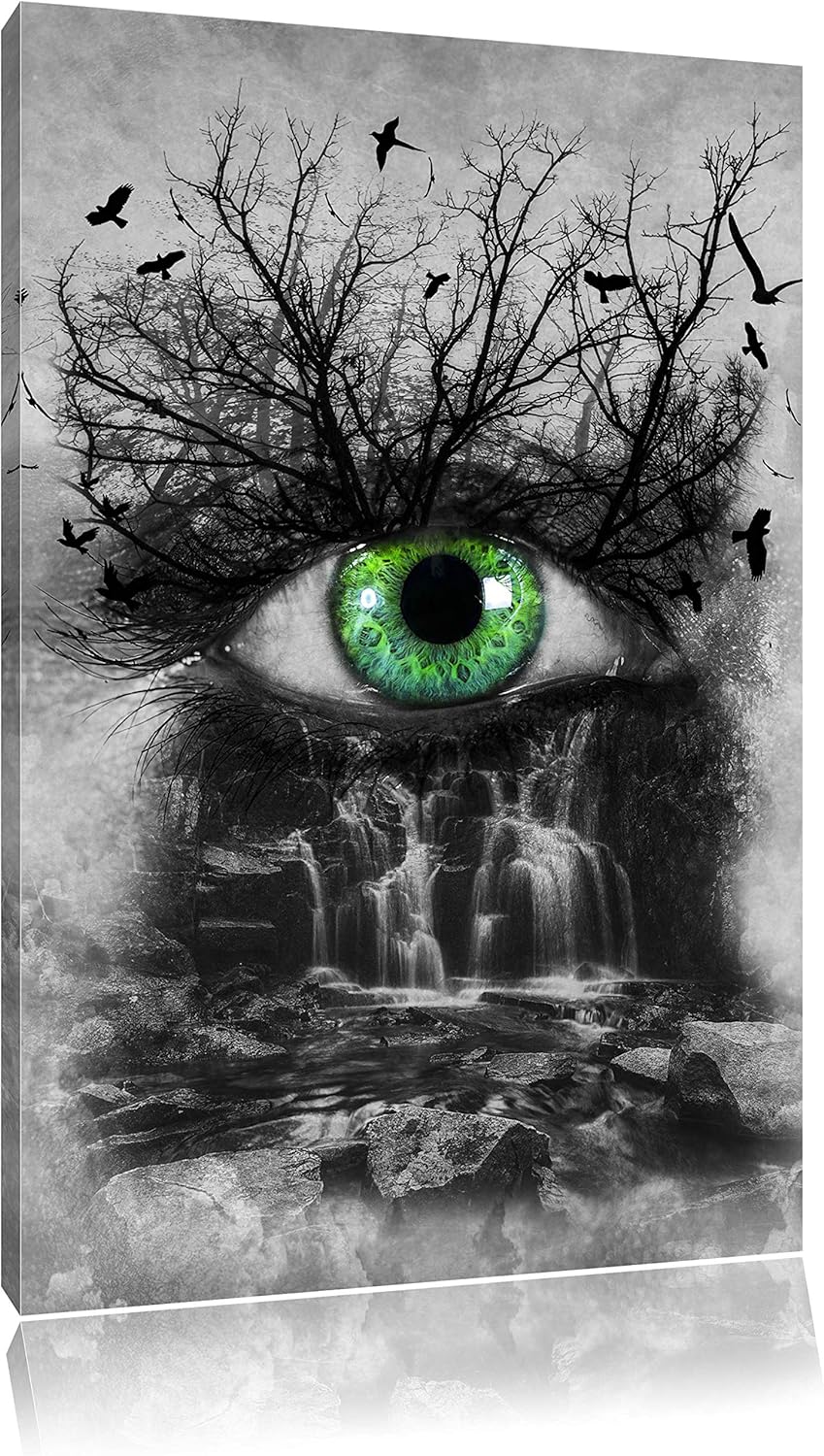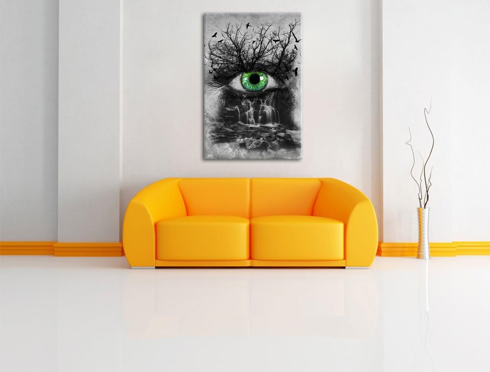 Auge verbunden mit schöner Natur schwarz/weiss Format: 100x70 auf Leinwand, XXL riesige Bilder ferti