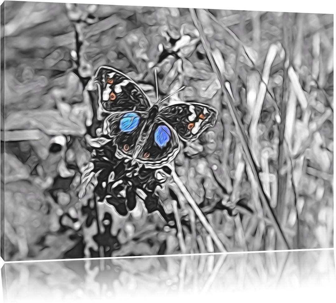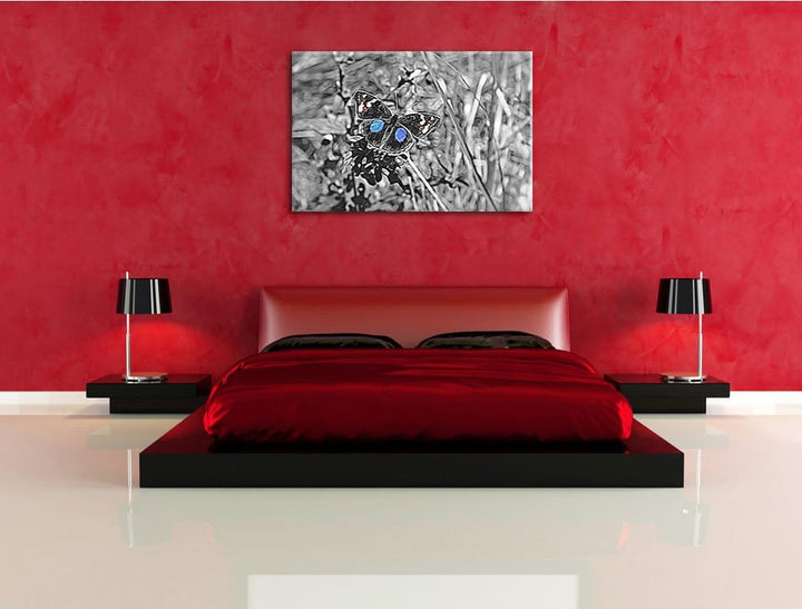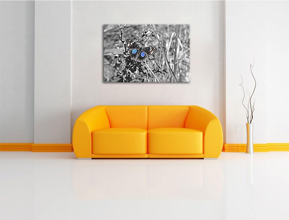 aussergewöhnlicher Schmetterling auf Grashalm schwarz/weiss Deluxe Format: 100x70 cm auf Leinwand, X