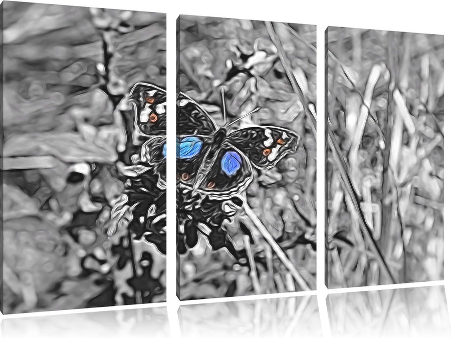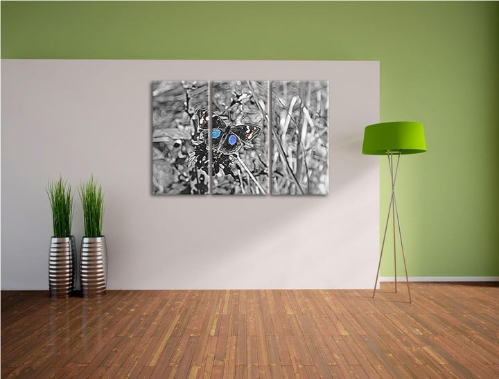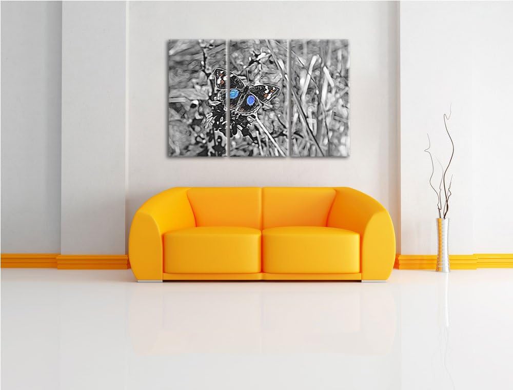 aussergewöhnlicher Schmetterling auf Grashalm schwarz/weiss Spezial 3-Teiler Leinwandbild 120x80 Bil