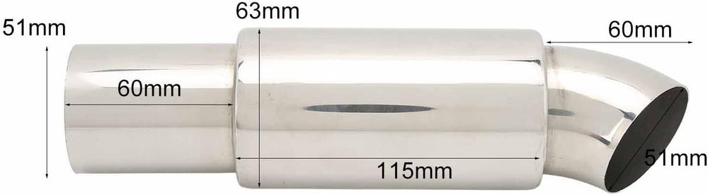- UNIVERSELLES ZUBEHÖR: Die Auspuffspitze wird mit einem 51 x 63 mm Einlassrohr und einem 51 x 60 mm Auslassrohr geliefert und kann verwendet werden, um verschiedene Arten von Fahrzeugen zu modifizieren, insbesondere Ihre.