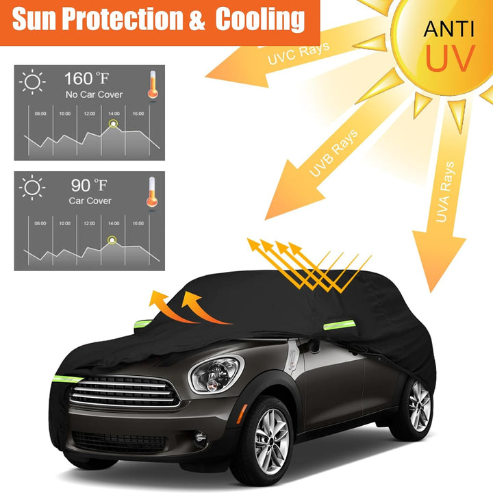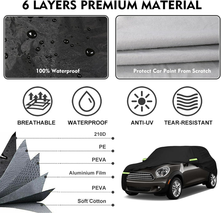 - Allwetter-Schutz: Alle Jahreszeiten und jedes Wetter geeignet. Unsere Autoabdeckung stellt sicher, dass Ihr Auto den Qualitätsschutz erhält, den es vor Schmutz, Kratzern, Vogelkot, UV-Strahlen, Schnee, Frost usw. braucht