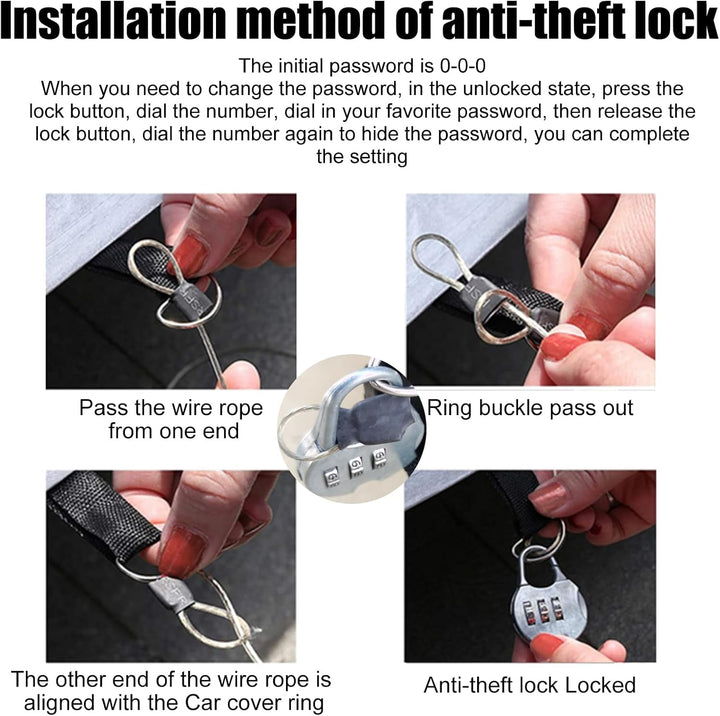 - Winddicht: Der elastische Rand der Autoabdeckung kann Ihr Auto gut passen, und der untere Befestigungsgurt + winddichter Gurt ist doppelt befestigt, was Ihr Auto auch an windigen Tagen fixieren kann. Exquisite Doppelnaht-Technologie macht die