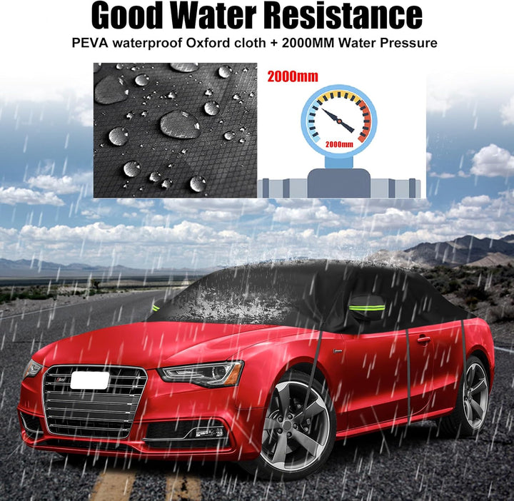 - Rundumschutz: Deckt Windschutzscheibe, Seiten-/Heckscheiben, Rückspiegel ab und schützt Ihr Auto vor Schnee, Frost, Vogelkot, UV-Strahlen, Regen, Staub usw. Ob heisser Sommer, rote Blätter im Herbst oder starker Schneefall im Winter, die
