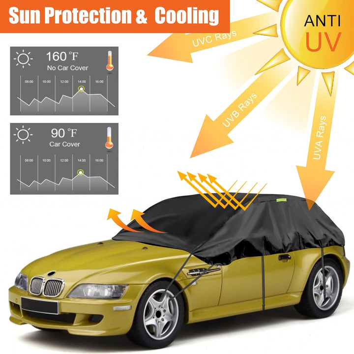 - Rundumschutz: Deckt Windschutzscheibe, Seiten-/Heckscheiben, Rückspiegel ab und schützt Ihr Auto vor Schnee, Frost, Vogelkot, UV-Strahlen, Regen, Staub usw. Ob heisser Sommer, rote Blätter im Herbst oder starker Schneefall im Winter, die