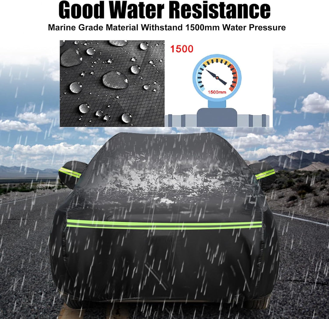 - Exzellenter Kundenservice: Die elastischen Kanten der Autoabdeckung passen perfekt zu Ihrem Auto, und der untere Riemen und die Windschutzscheibe verfügen über eine doppelte Fixierung, um Ihr Auto auch an windigen Tagen an Ort und Stelle zu halten. Die