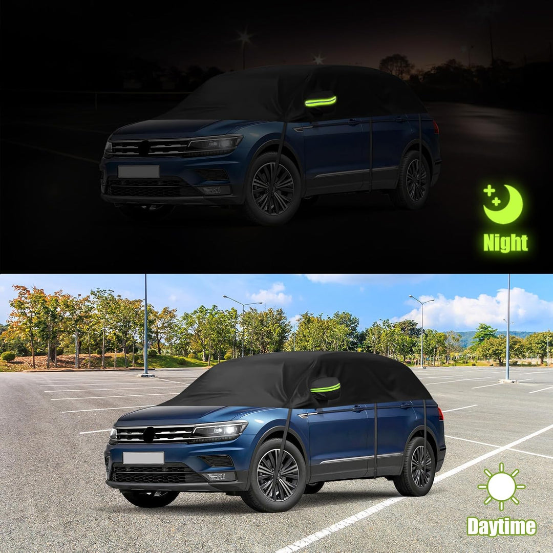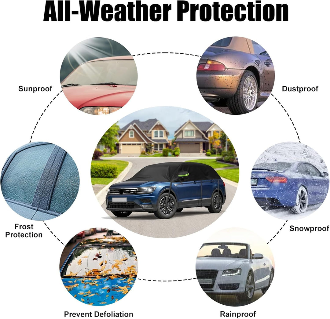 - Rundumschutz: Deckt Windschutzscheibe, Seiten-/Heckscheiben, Rückspiegel ab und schützt Ihr Auto vor Schnee, Frost, Vogelkot, UV-Strahlen, Regen, Staub usw. Ob heisser Sommer, rote Blätter im Herbst oder starker Schneefall im Winter, die